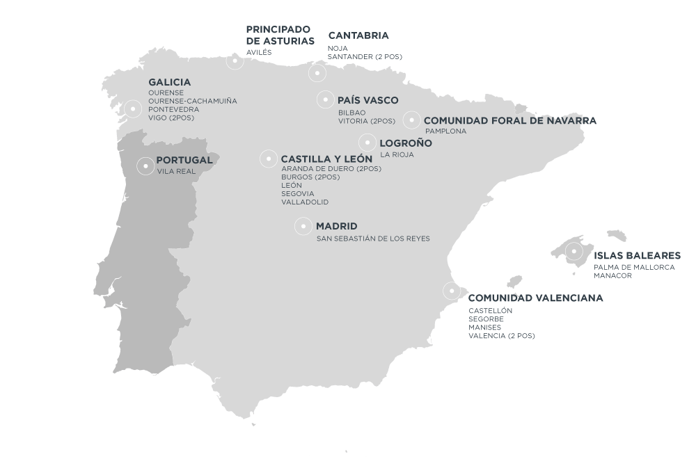 Ubicación de nuestros 32 puntos de venta